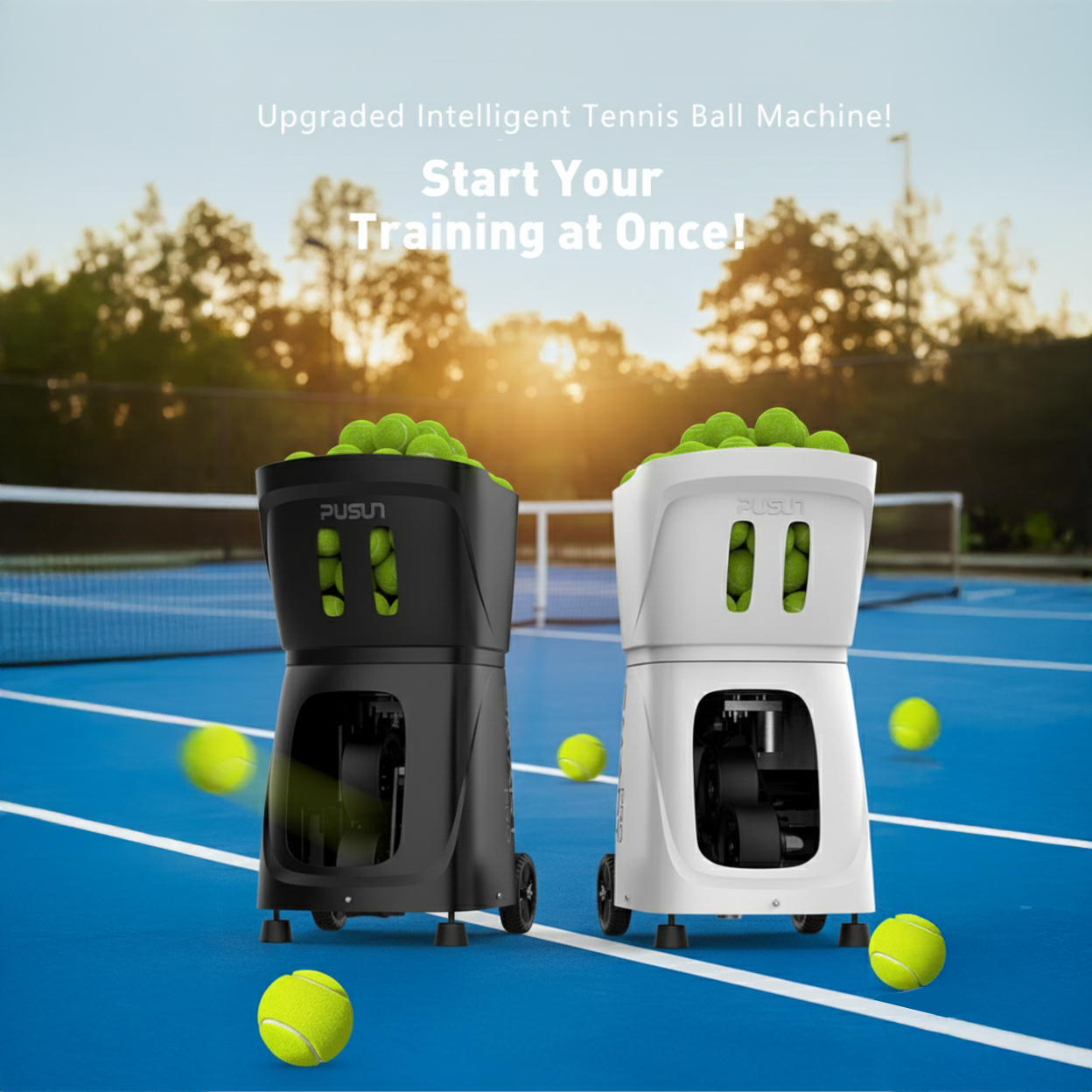 The PT-MAX C is a high-performance tennis ball machine designed for individual players who want professional-level training. With advanced app control, strong battery life, and multiple drill modes, it brings full-court training to any court.